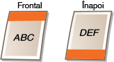 Puteţi specifica această setare împreună cu <Decalare muchie lungă (Frontal)>, <Decalare muchie scurtă (Spate)> şi <Decalare muchie lungă (Spate)>. Specificând toate patru setările, de exemplu, poziţia de imprimare este mutată aşa cum este indicat în imaginea de mai jos.