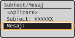 Selectaţi <Subiect/Mesaj> şi apăsaţi