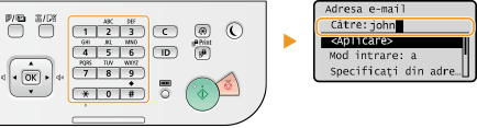 Folosiţi tastatura numerică de pe panoul de operare pentru a specifica destinaţiile.
