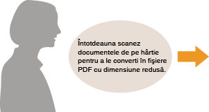 Specificaţi <PDF (Compact)> ca format implicit pentru fişier şi înregistraţi-l ca setare implicită. De acum înainte, nu va mai trebui să modificaţi formatul fişierului când scanaţi. Modificarea setărilor implicite la scanare