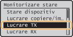 pentru a selecta <Lucrare TX> şi apăsaţi