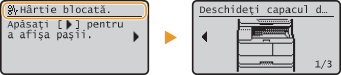 pentru a afişa soluţii simple pe ecran. Dacă vă este dificil să înţelegeţi procedura pe ecran, citiţi secţiunea următoare pentru a elimina blocajele. Citiţi cu atenţie precauţiile din Întreţinere şi verificări înainte de a rezolva blocajele de hârtie.