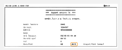 Un fax nu a putut fi trimis deoarece aparatul destinatarului nu a răspuns pentru că linia a fost ocupată sau din alte cauze.
