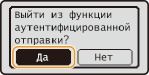 , для переключения с функции, используемой в настоящий момент, на другую функцию, отображается экран подтверждения выхода из системы, приведенный ниже. Для выхода из режима авторизованной отправки (функция факса или сканирования), используя / , выберите <Да> и нажмите .![]() |