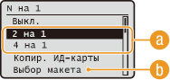 Использование настройки <2 на 1>/<4 на 1> автоматически уменьшает коэффициент копирования (коэффициент копирования отображается на экране). Коэффициент копирования можно увеличить или еще больше уменьшить перед нажатием клавиши