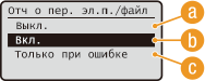 Можно выполнить печать отчета, чтобы проверить результат передачи сообщения, отправленного по электронной почте, или файла для сохранения на файловом сервере. Этот отчет можно выводить на печать либо каждый раз по завершении передачи, либо только при возникновении ошибки передачи.