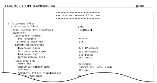 Можно выполнить печать списка, чтобы проверить имена политик и настройки IPSec, зарегистрированные на аппарате.