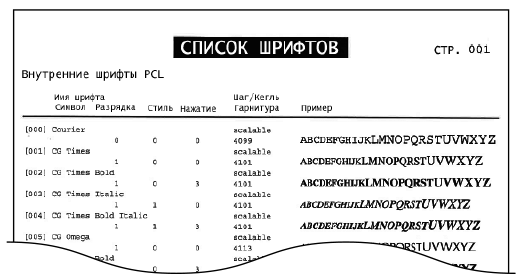 Можно выполнить печать списка, чтобы проверить шрифты, доступные в режиме PCL.