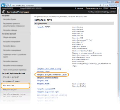 Чтобы отключить Виртуальный принтер Google, выберите <Выкл.>.
