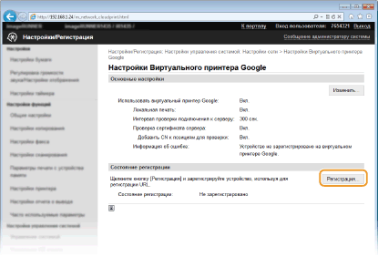Нажмите [Регистрация] в пункте [Состояние регистрации].