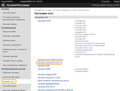 Используйте удаленный ИП для настройки таких параметров электронной почты, как сведения о сервере SMTP и кодированного обмена данными TLS. Для получения дополнительных сведений о требуемых настройках обратитесь к поставщику интернет-услуг или администратору сети.