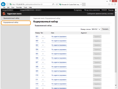 Зарегистрированного адресата можно удалить, нажав кнопку [Удалить].