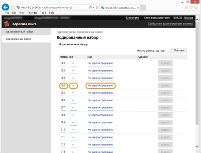 Нажмите текстовую ссылку под полем [Номер], [Тип] или [Имя] для пункта с именем «Не зарегистрир.».