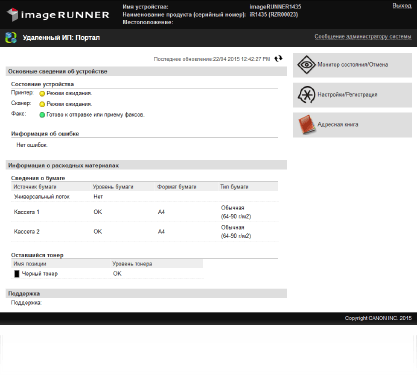 Для удаленного управления нужно ввести IP-адрес аппарата в веб-браузере и запустить удаленный ИП. Заранее проверьте, задан ли IP-адрес аппарата (