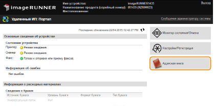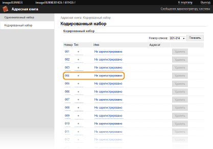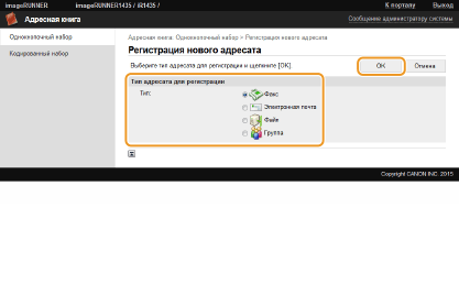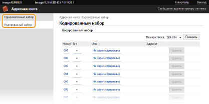 Регистрировать или редактировать адресную книгу можно только в том случае, если вход в систему выполнен в режиме администратора системы.