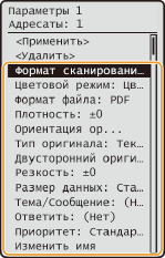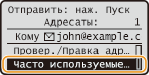 <Часто исп. параметры> <Правка/Удаление> выберите настройку измените настройку <Применить> Да . Невозможно изменить адресатов, зарегистрированных для настройки с помощью этой процедуры. Зарегистрируйте для требуемых адресатов новую настройку.Если требуется удалить зарегистрированную настройку, нажмите клавиши