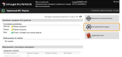 на панели управления. Вкл./Выкл. управление ИД отдела Вход в систему аппарата