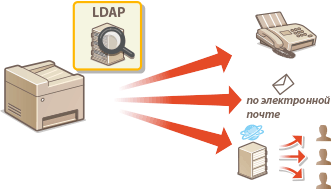 Авторизованная отправка — это функция защиты, при которой сервер LDAP в сети используется для предотвращения несанкционированную передачу сообщений электронной почты, файлов или факсов. При использовании этой функции пользователи, прежде чем отправлять документы, должны подтвердить свои полномочия путем аутентификации своих учетных данных, зарегистрированных на сервере LDAP. Функция авторизованной отправки позволяет также разрешать отправку документов только зарегистрированным адресатам или полностью запрещать отправку документов пользователями.