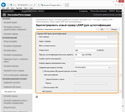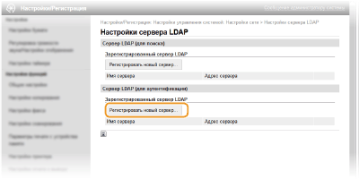 Нажмите [Регистрировать новый сервер...] в пункте [Сервер LDAP (для аутентификации)].