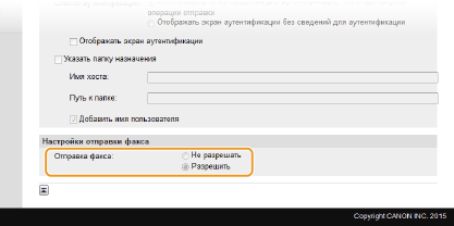 Выберите, чтобы разрешить пользователям отправлять факсы с аппарата.