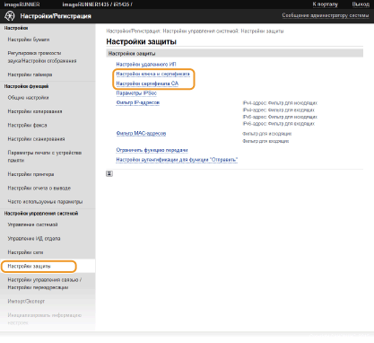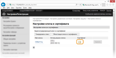 [Настройки ключа и сертификата] (для пар ключей) или [Настройки сертификата CA] (для сертификатов CA).