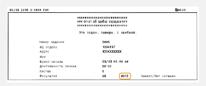 Не удалось отправить факс, так как аппарат получателя не ответил вследствие перегрузки линии или по какой-либо иной причине.