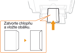 Pred vložením obálok nezabudnite vyrovnať ľubovoľné stočenia. Dávajte tiež pozor na orientáciu obálok a na to, ktorá strana je hore. Vložte obálky do mnohoúčelového priečinka. Nemôžete ich vkladať do zásuvky na papier.