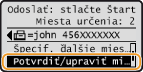 Vyberte voľbu Potvrdiť/upraviť miesto určenia a stlačte