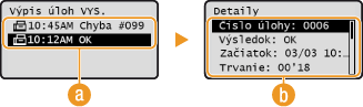 Keď je položka <Zobraziť výpis úloh> nastavená na možnosť <Vyp.>, nemôžete skontrolovať výpisy komunikácie.