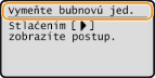 Keď sa na displeji jedna z nižšie uvedených správ, musíte vymeniť bubnovú jednotku. Podrobnejšie informácie o výmene bubnovej jednotky získate od miestneho autorizovaného zástupcu firmy Canon.