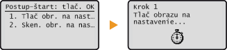 Začne sa nastavenie. V priebehu približne 15 sekúnd sa vytlačí nastavovací obraz.