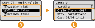 .![]() <Stav úl. kopír./tlače>Zobrazuje zoznam dokumentov, ktoré sa spracúvajú, kopírujú alebo čakajú na spracovanie.