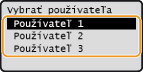 Ak sú v pamäti zabezpečené dokumenty od dvoch alebo viacerých užívateľov, zobrazí sa obrazovka <Vybrať používateľa> (pred obrazovkou <Vybrať súbor>). Použite