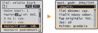 Ak chcete špecifikovať nastavenia tlače iba pre súbory JPEG/TIFF