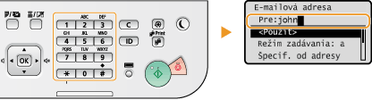 Číselné tlačidlá môžete použiť iba pri špecifikácii prvého miesta určenia. Ak chcete špecifikovať ľubovoľné ďalšie miesta určenia, použite telefónny zoznam alebo server LDAP. Ak chcete špecifikovať miesta určenia ako adresy kópie (Cc) alebo skrytej kópie (Bcc), musíte použiť telefónny zoznam.
