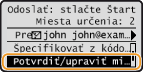 Ak ste už špecifikovali miesto určenia pomocou číselných tlačidiel, pomocou servera LDAP môžete špecifikovať maximálne deväť miest určenia.