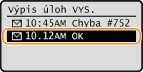 Keď je položka <Zobraziť výpis úloh> nastavená na možnosť <Vyp.>, nemôžete skontrolovať výpisy pre odoslané dokumenty.
