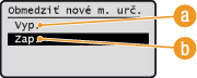 Obmedzením faxových čísel e-mailových adries, ktoré sa dajú špecifikovať pri odosielaní dokumentov na tie, ktoré sú už uložené v telefónnom zozname, tie, ktoré boli predtým použité, alebo tie, ktoré sa dajú vyhľadať zo serverov LDAP, môžete znížiť možnosť špecifikácie nesprávnych miest určenia a zabrániť užívateľom v úniku informácií. Keď je aktivovaná táto funkcia, stroj zabráni užívateľom zadať miesta určenia pomocou číselných tlačidiel, pridať nové záznamy do telefónneho zoznamu a upraviť existujúce záznamy v telefónnom zozname.