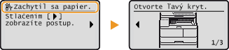 na zobrazenie jednoduchých riešení na obrazovke. Ak je ťažké pochopiť postupy na displeji, pozrite si nasledujúce časti na odstránenie zachytených predmetov. Pred odstránením zachyteného papiera si pozorne prečítajte opatrenia v časti Údržba a kontrola.