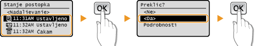 na upravljalni plošči. Kopiranje lahko prekličete tudi zatem, ko preverite stanja kopiranja.