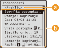 Prikazani so število kopij, nastavitve in druge podrobnosti. Če želite samo preveriti podrobnosti, vendar ne želite preklicati kopiranja, pritisnite