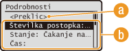 Prikažejo se število poslanih dokumentov, nastavitve in druge podrobnosti. Če želite samo preveriti podrobnosti, vendar ne želite preklicati faksiranja, pritisnite