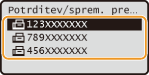 Izberite <Potrditev/Sprememba prejemnika> in pritisnite