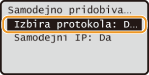 Če za dodeljevanje naslova IP ne želite uporabiti DHCP Izberite <Izključeno>. Če izberete <DHCP>, ko storitev DHCP ni na voljo, stroj išče storitve v omrežju in to pomeni dodatno nepotrebno komuniciranje. |