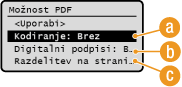 * Nekateri elementi so na voljo samo, če je omogočena izbirna funkcija Send PDF Security Feature Set (Komplet varnostnih funkcij za pošiljanje dokumentov PDF).