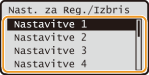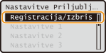 <Nastavitve Priljubljeno> <Sprememba/Izbris> izberite nastavitev <Izbriši> <Da> .Registrirane nastavitve ostanejo shranjene tudi, ko ugasnete stroj.