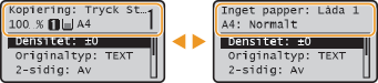 visas huvudskärmen för den valda funktionen. Huvudskärmen för kopiering visas nedan som ett exempel.