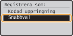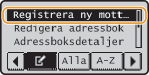 för att välja <Registrera ny mottagare i adressbok> och tryck på