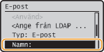 Enligt innehållet som registrerats i LDAP-servern ifylls automatiskt användarnamn och faxnummer/e-postadress för angiven mottagare som är registrerad på LDAP-servern.