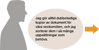 . Om du registrerar dina vanligaste inställningar som standardinställningar, behöver du inte göra samma inställningar varje gång du gör kopior. Du kan dessutom registrera kombinationer av flera kopieringsinställningar och använda dem när du behöver dem.|